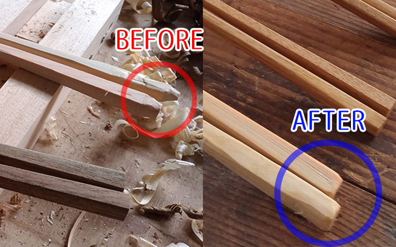 時間があったので密かに前回作成した箸の失敗部分を思い出とともに切り落としました。