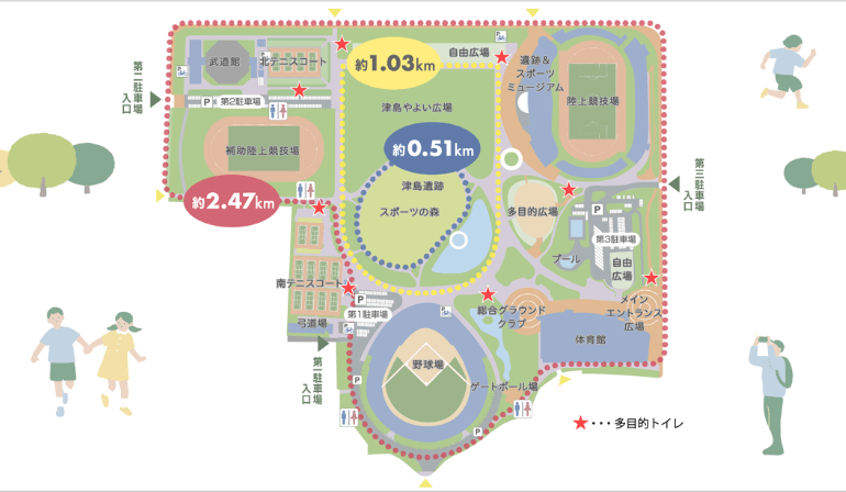 ▼園内マップの黄色コース(約1.03km)を周回予定です!